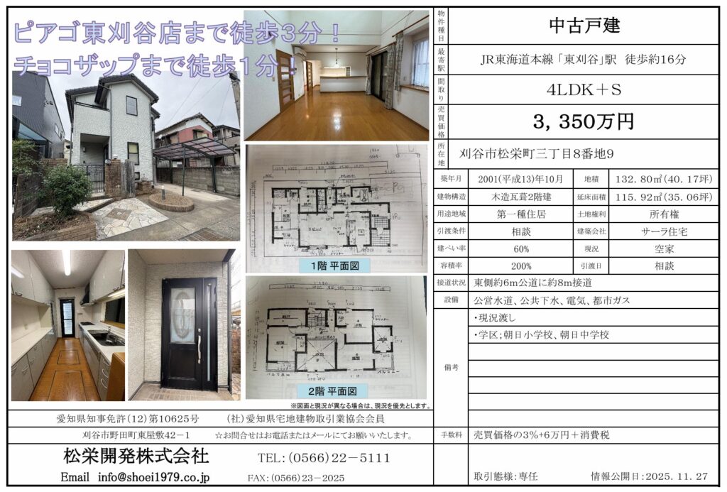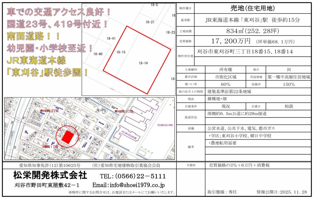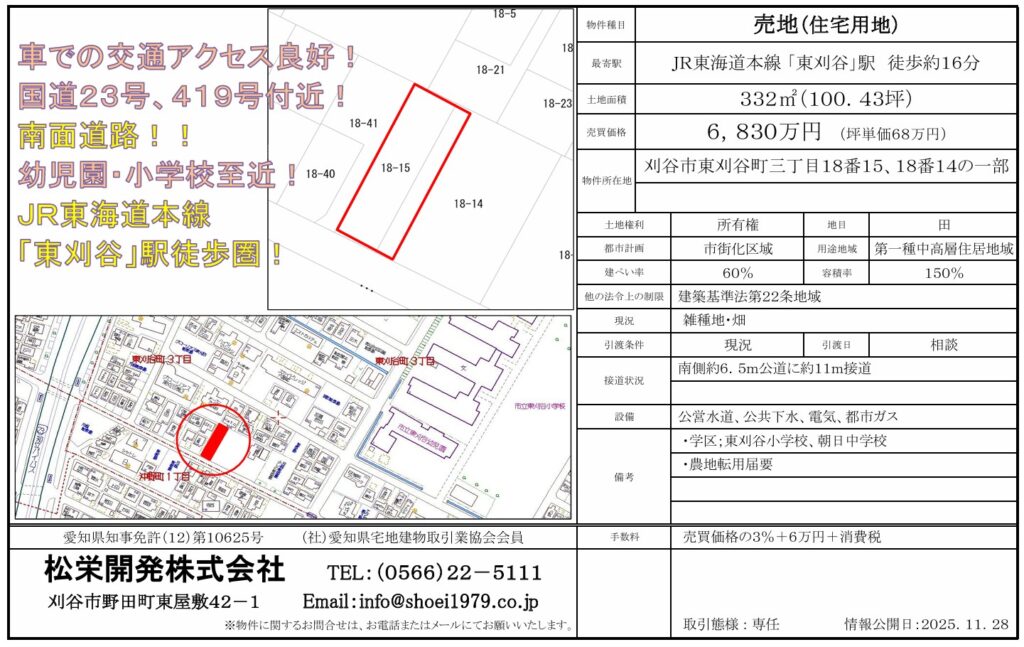 物件 2025年11月28日 by pinpon_admin <事業用定期借地> ① 刈谷市南沖野町 450.42坪 第一種中高層住居専用地域 ② 刈谷市野田町 276.48坪 第一種住居地域 ③ 岡崎市筒針町 625.87坪 市街化調整区域 <賃貸> <売買(中古戸建)> <売買(土地)>