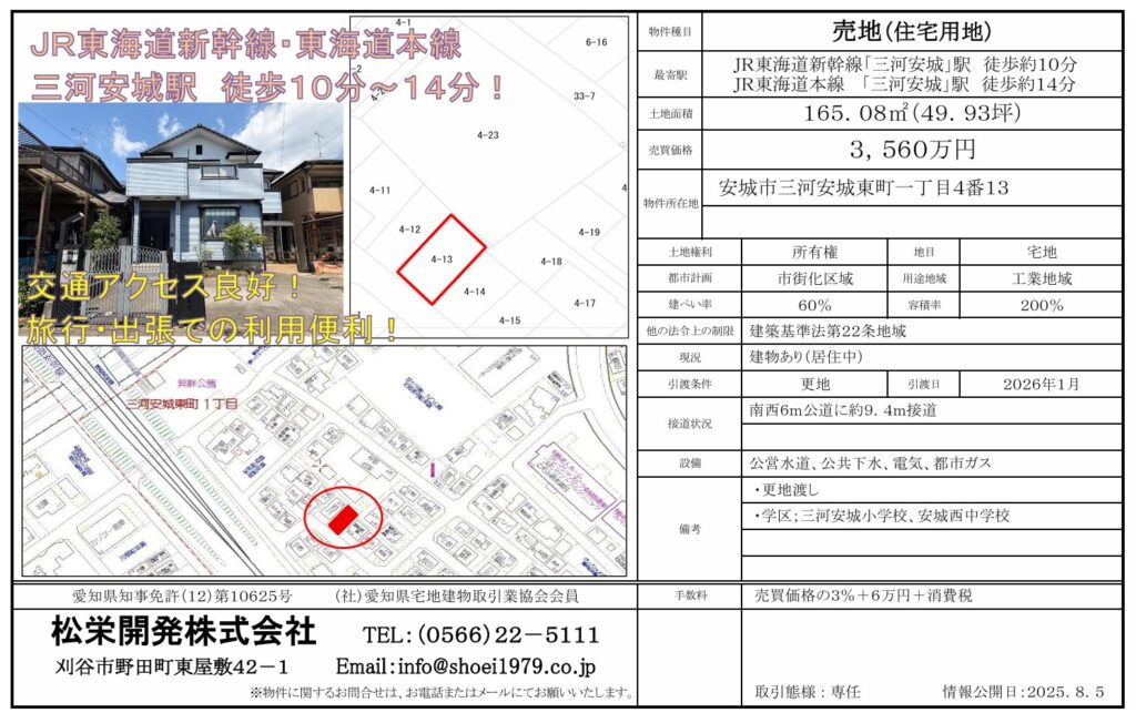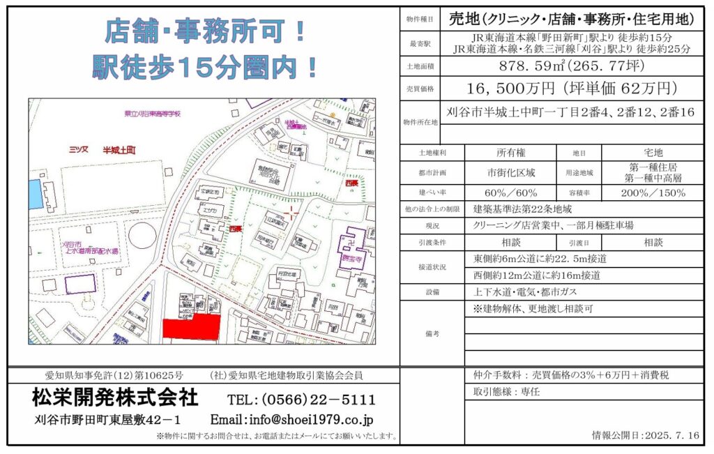 ① 刈谷市南沖野町 450.42坪 第一種中高層住居専用地域